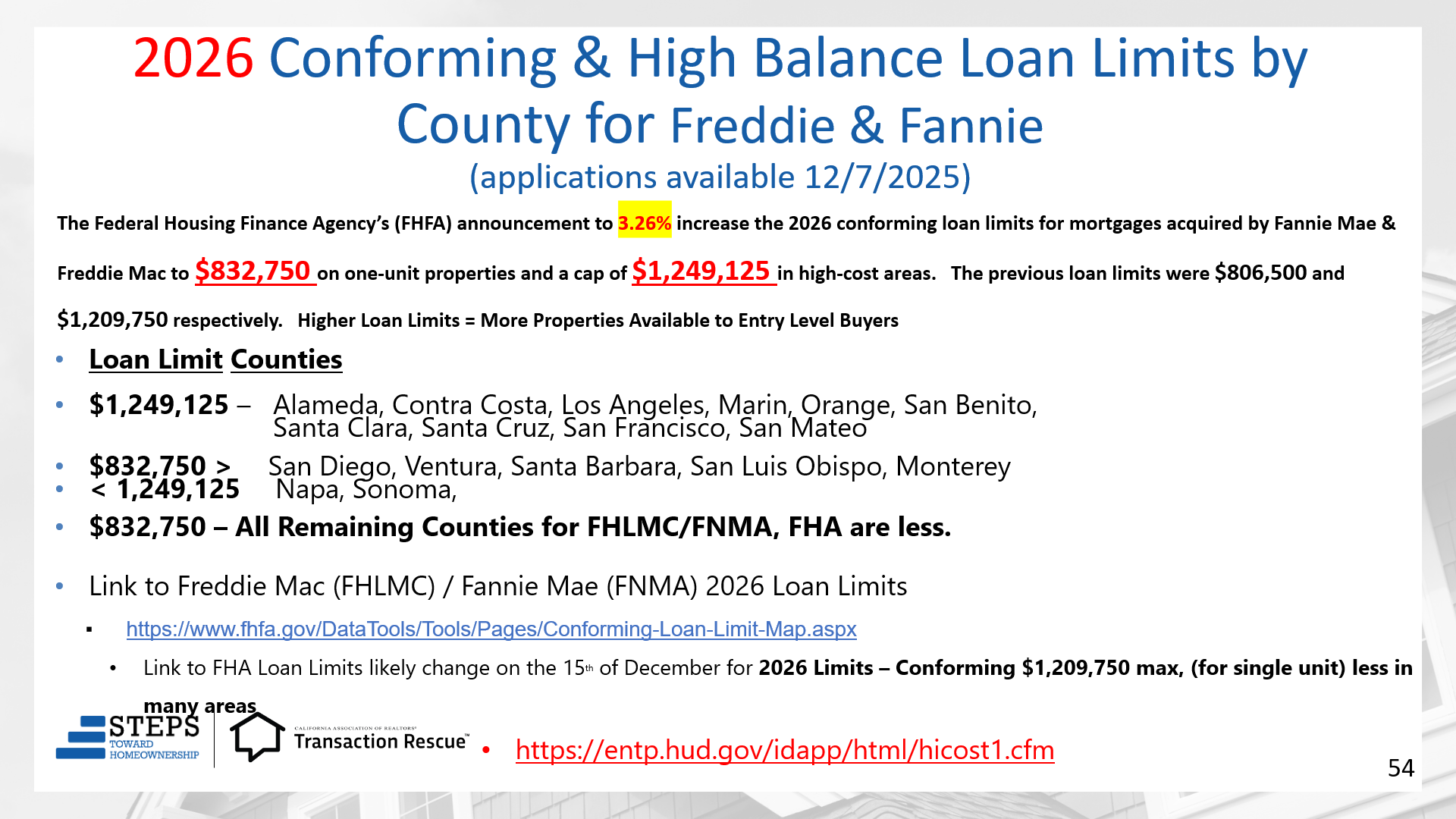 • Information about FHA, Conventional, Jumbo, and Special Loan Program
